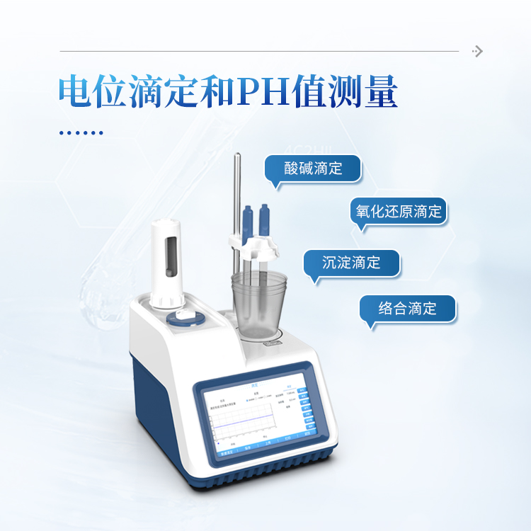 简要描述: 自动电位滴定仪属于实验室通用基础设备,使用非常广泛,可应用在食品、药检、疾控、商检、水处理、石油、化工、海洋、电力、环保、新能源、教学、科研等相关领域。设备支持电位滴定和pH值测量;用户选择不同电极可进行酸碱滴定、氧化还原滴定、沉淀滴定、络合滴定等多种滴定和pH测量。